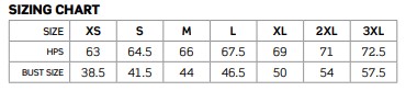 | Half Chest | 57 | 59 | 61 | 63 | 65 | 67 | 69 | 71 | 73 |